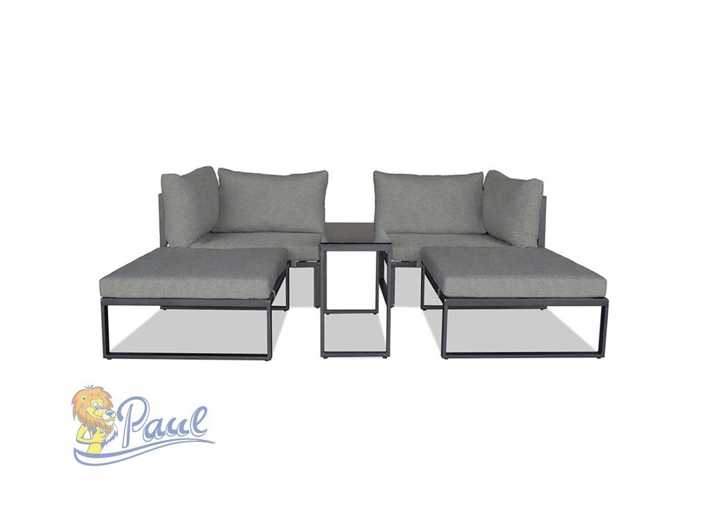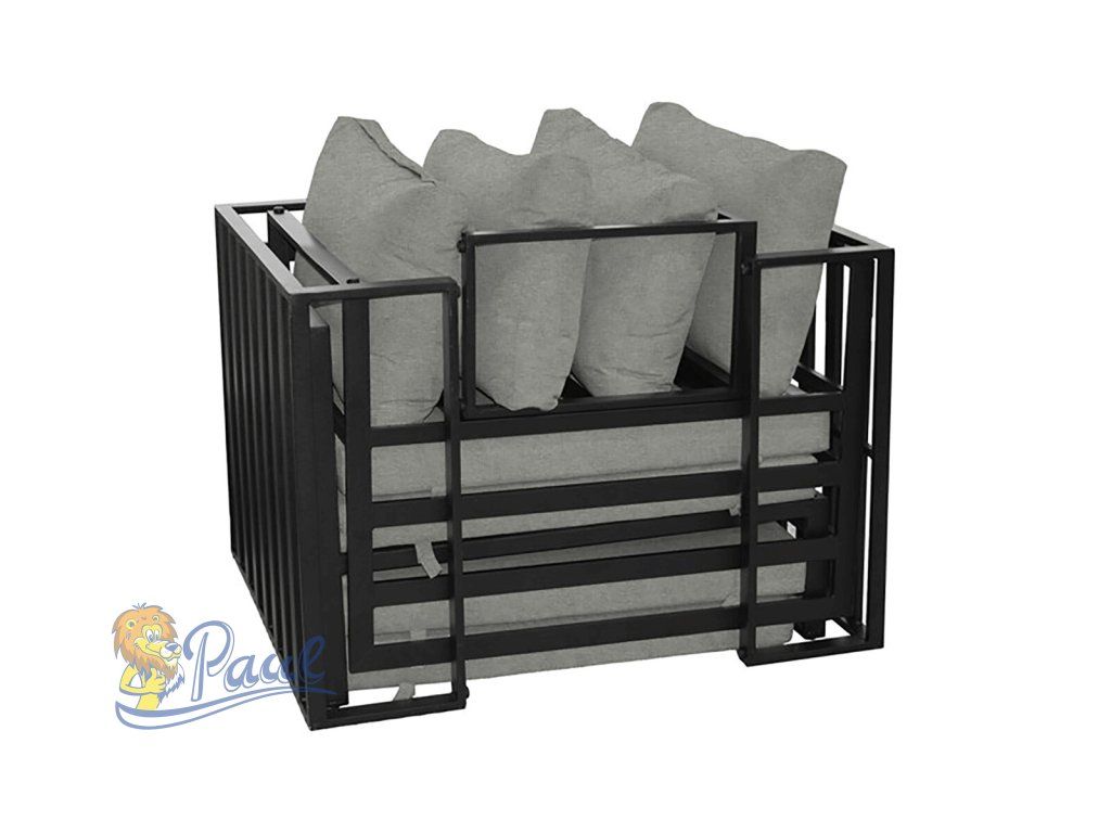 Zahradní set 2+1, stolek 75x30, multifunkční pohovka, kov antracit, světle šedá látka
