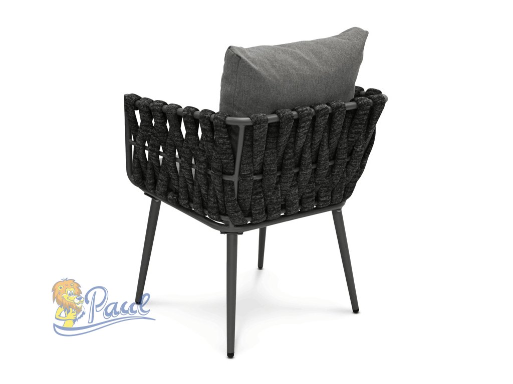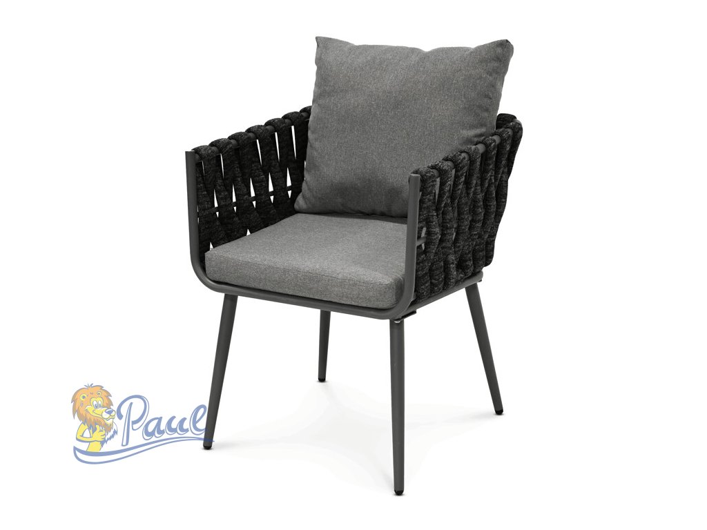 Zahradní židle v šedém provedení kombinuje pevnou kovovou konstrukci s komfortním textilním čalouněním sedáku a opěráku. Design židle je nadčasový, s otevřeným proplétaným rámem, který zajišťuje dostatečnou cirkulaci vzduchu a lehkost celkového vzhledu. Čalounění je příjemné na dotek a vhodné pro venkovní použití, přičemž nohy židle jsou stabilní a odolné vůči povětrnostním vlivům. Díky ergonomickému tvaru a polstrování poskytuje pohodlné posezení při relaxaci na zahradě či terase. Židle je ideální volbou pro kombinaci stylu a funkčnosti v exteriérovém prostředí.Doplňkové parametry