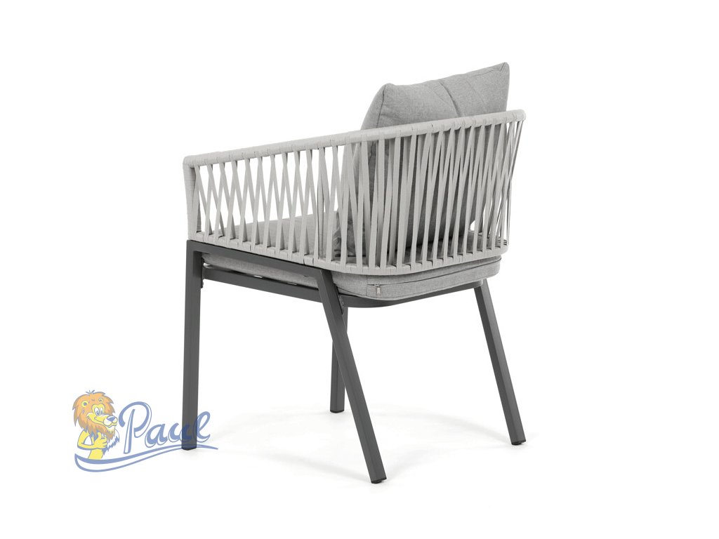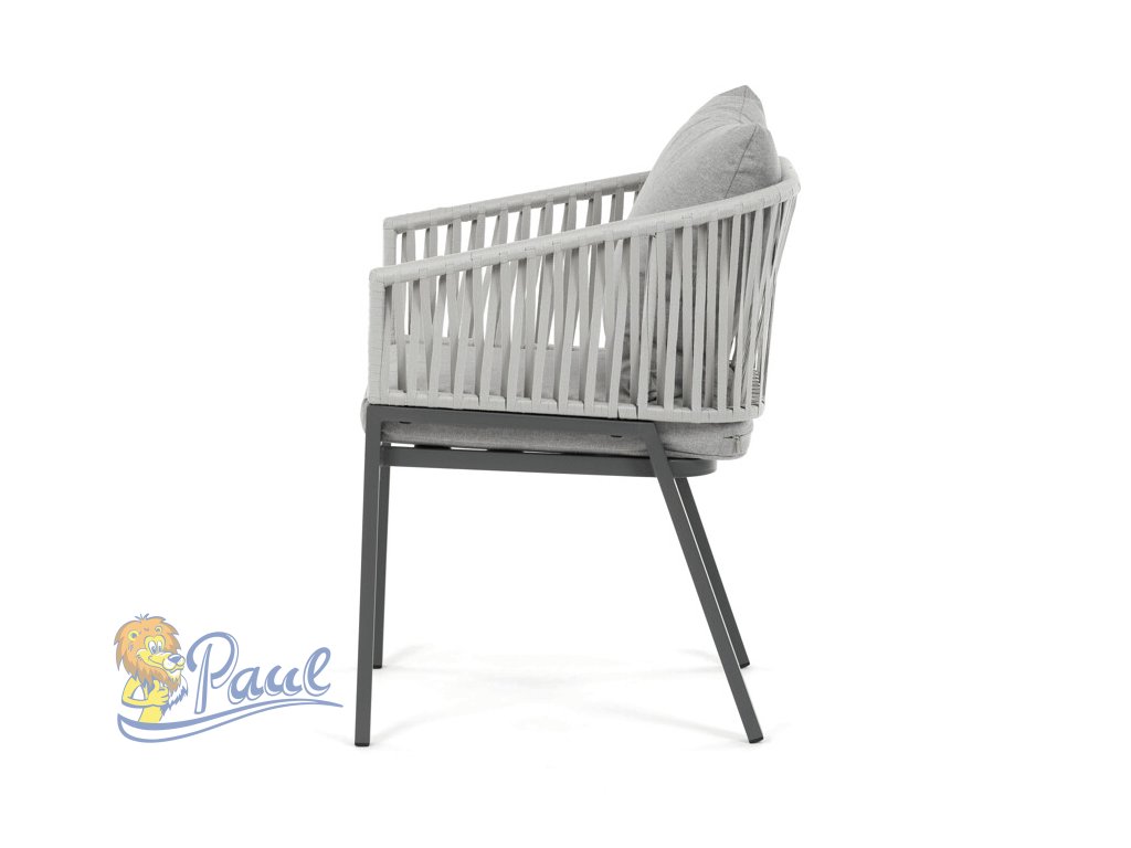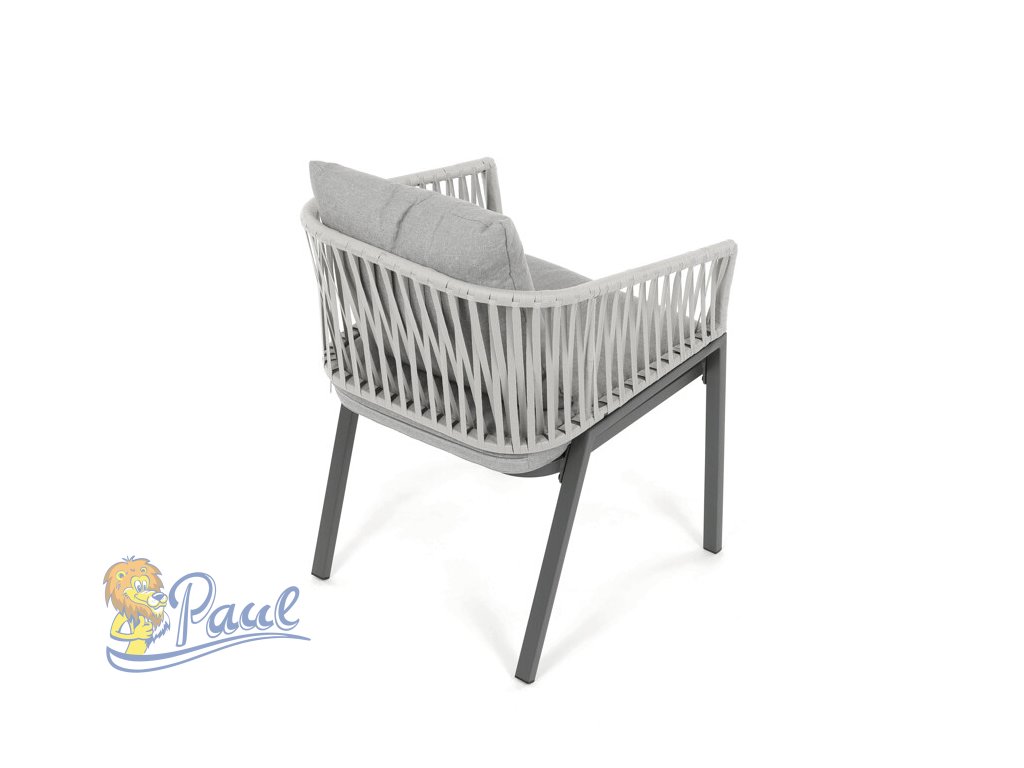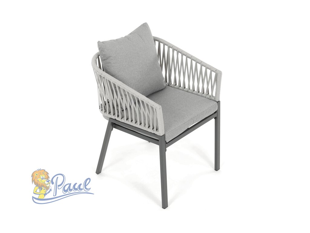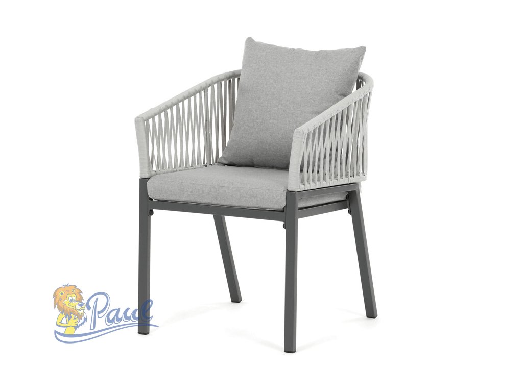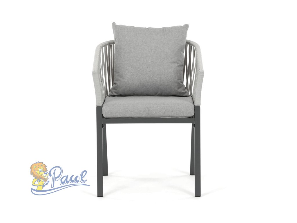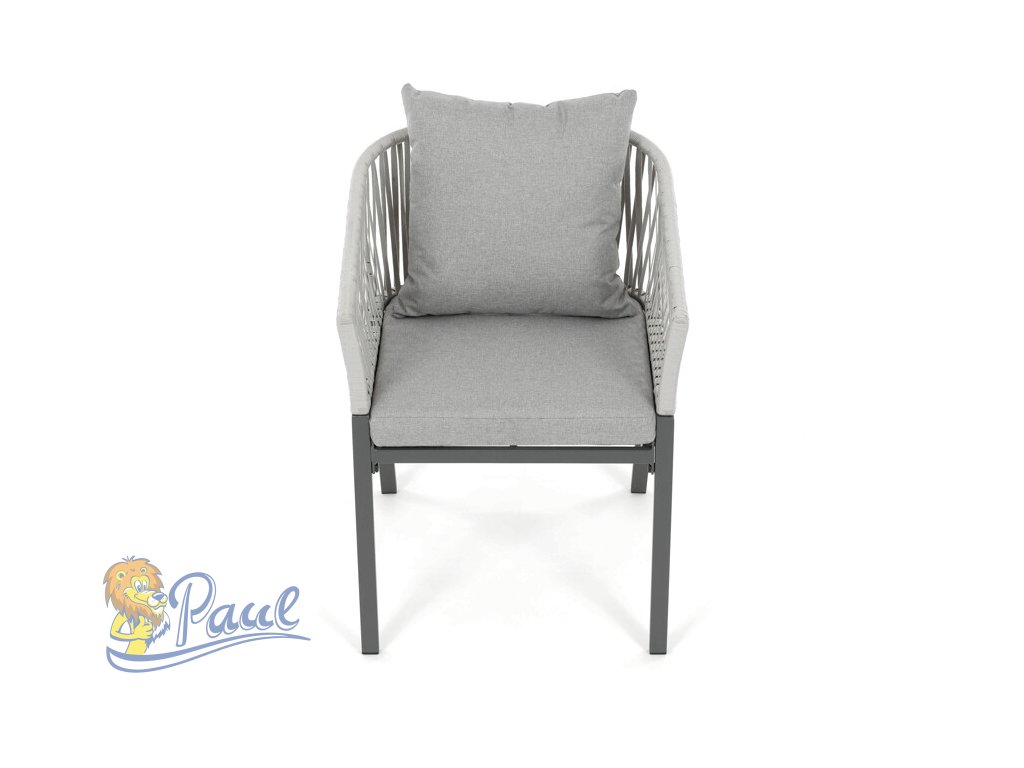 Zahradní židle s pevnou kovovou podnoží v šedém odstínu nabízí stabilitu a dlouhou životnost i při venkovním použití. Sedák a opěradlo jsou čalouněné šedou látkou, která je příjemná na dotek a vhodná pro relaxaci na zahradě či terase. Nadčasový design s jednoduchými liniemi a decentním propletením na opěradle zajišťuje univerzální využití v různých venkovních prostorách. Židle kombinuje komfort s odolností materiálů, což ji předurčuje k pravidelnému užívání v exteriéru. Díky svému provedení je snadná na údržbu a zároveň vizuálně přitažlivá.Doplňkové parametry