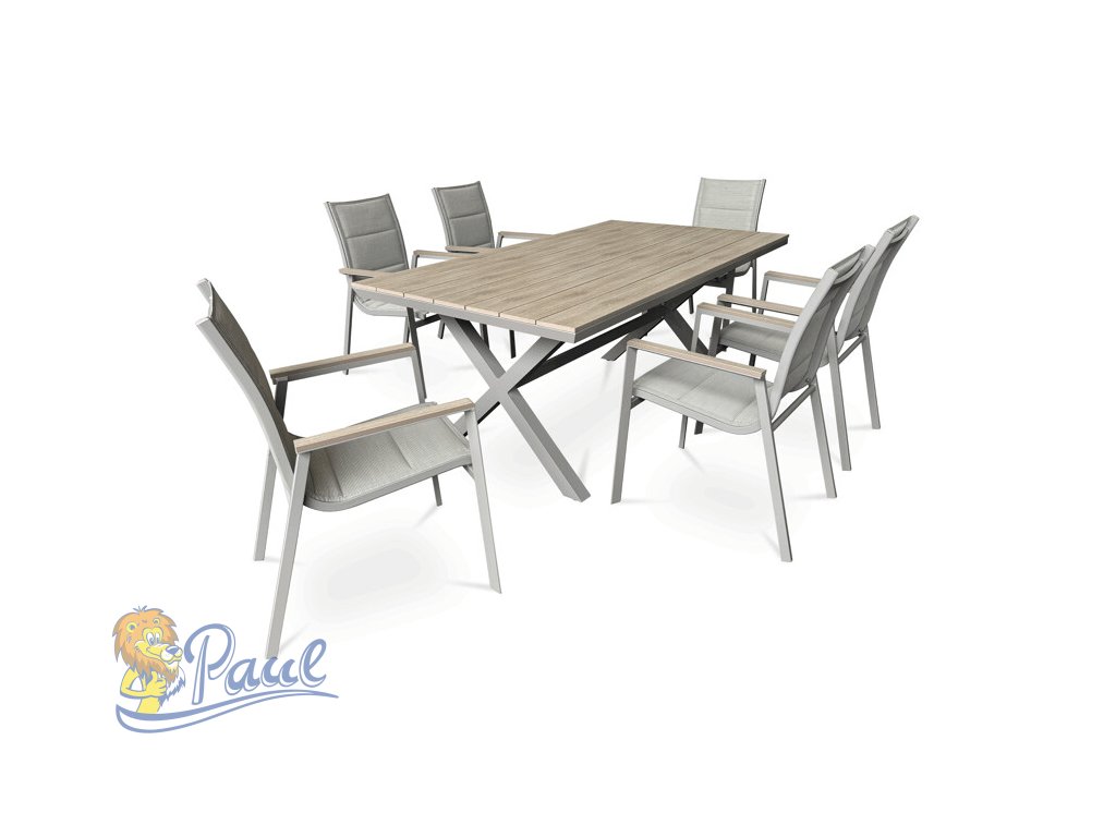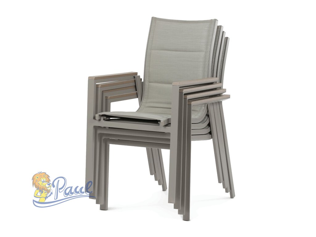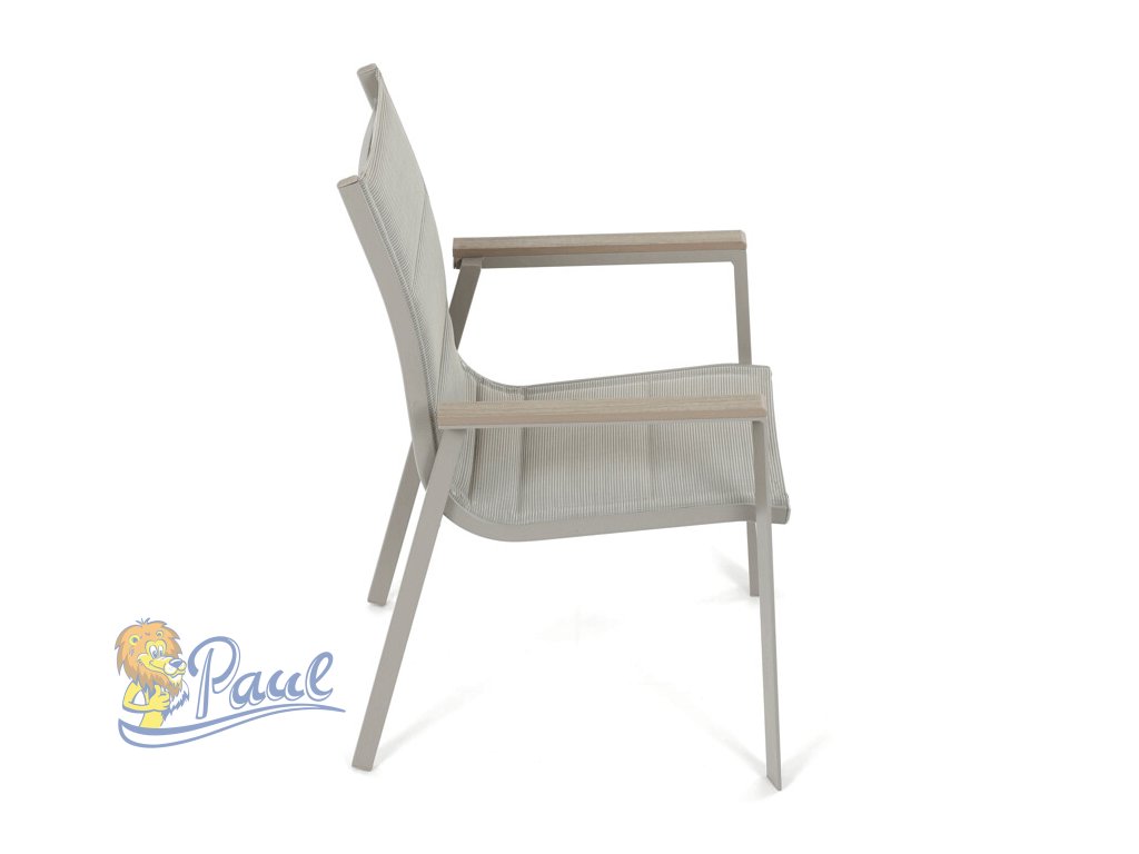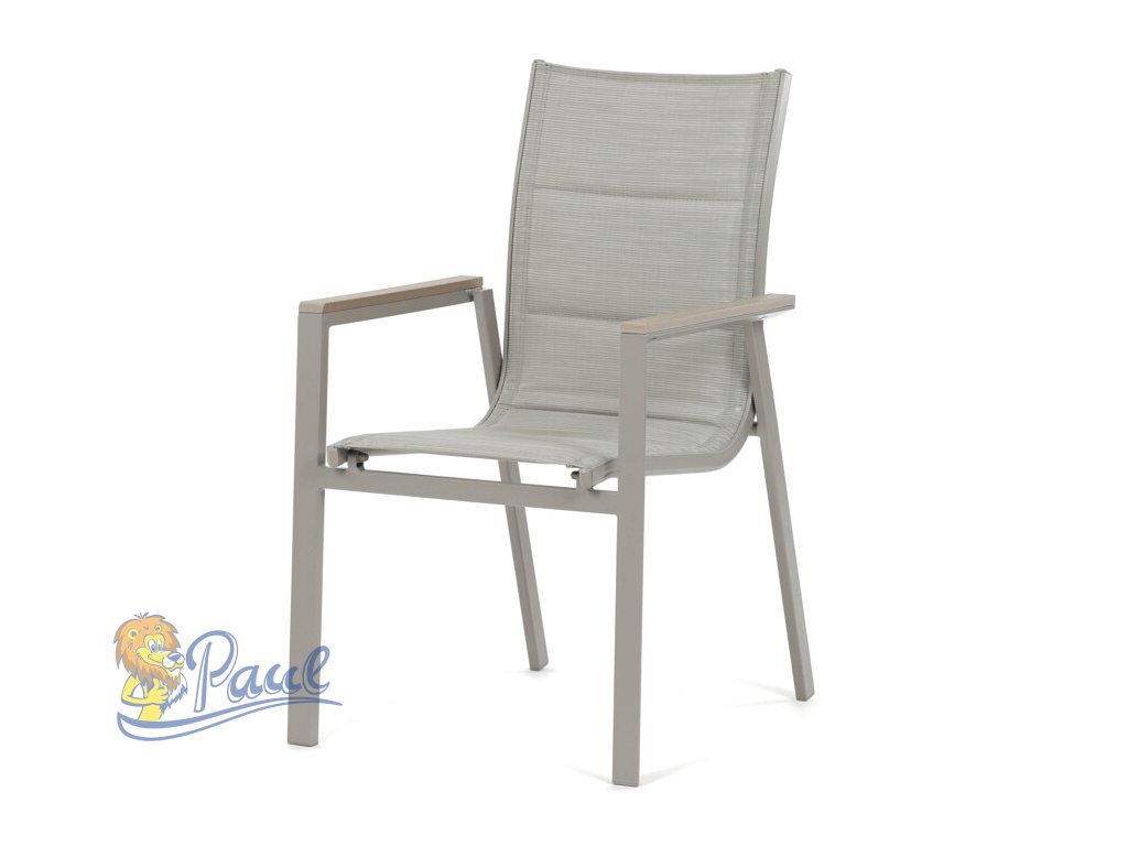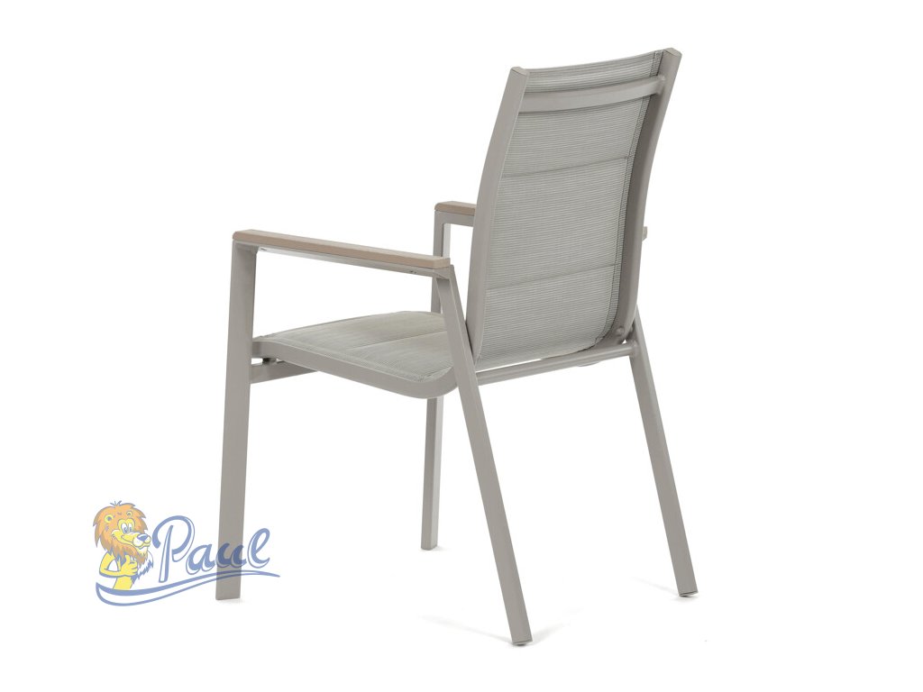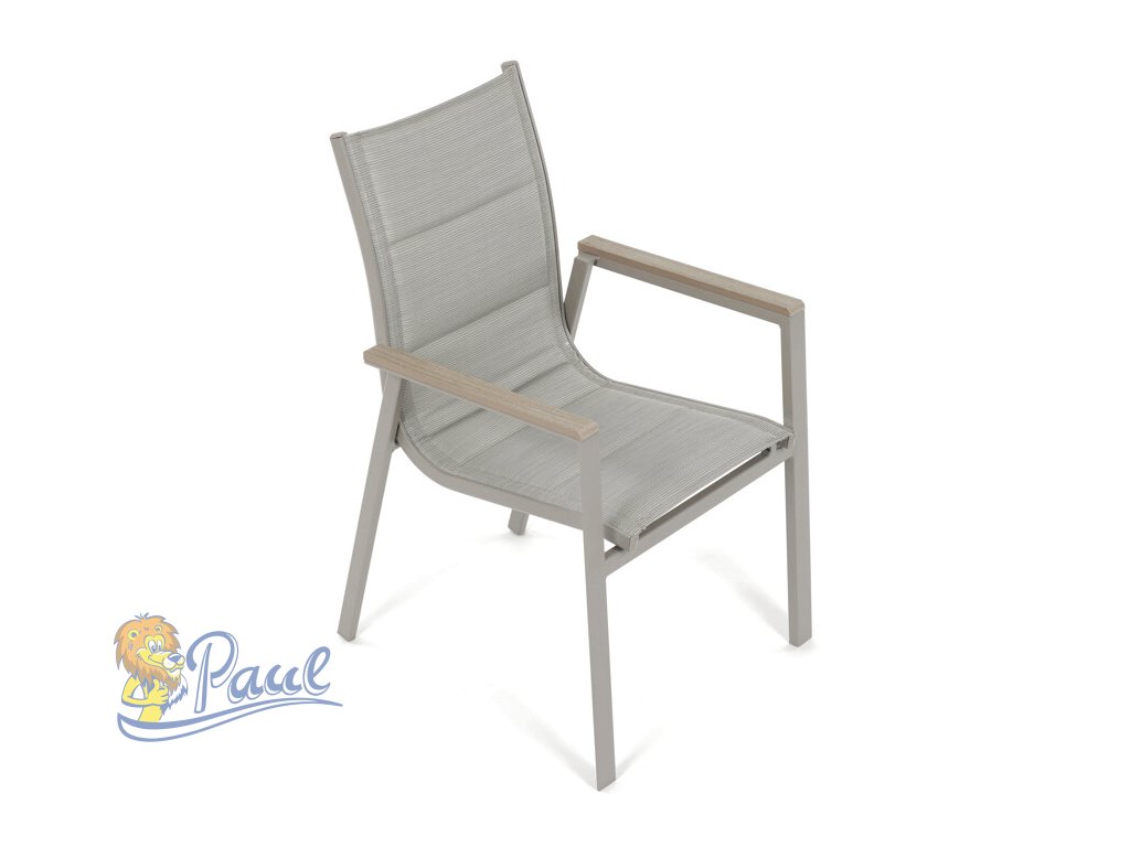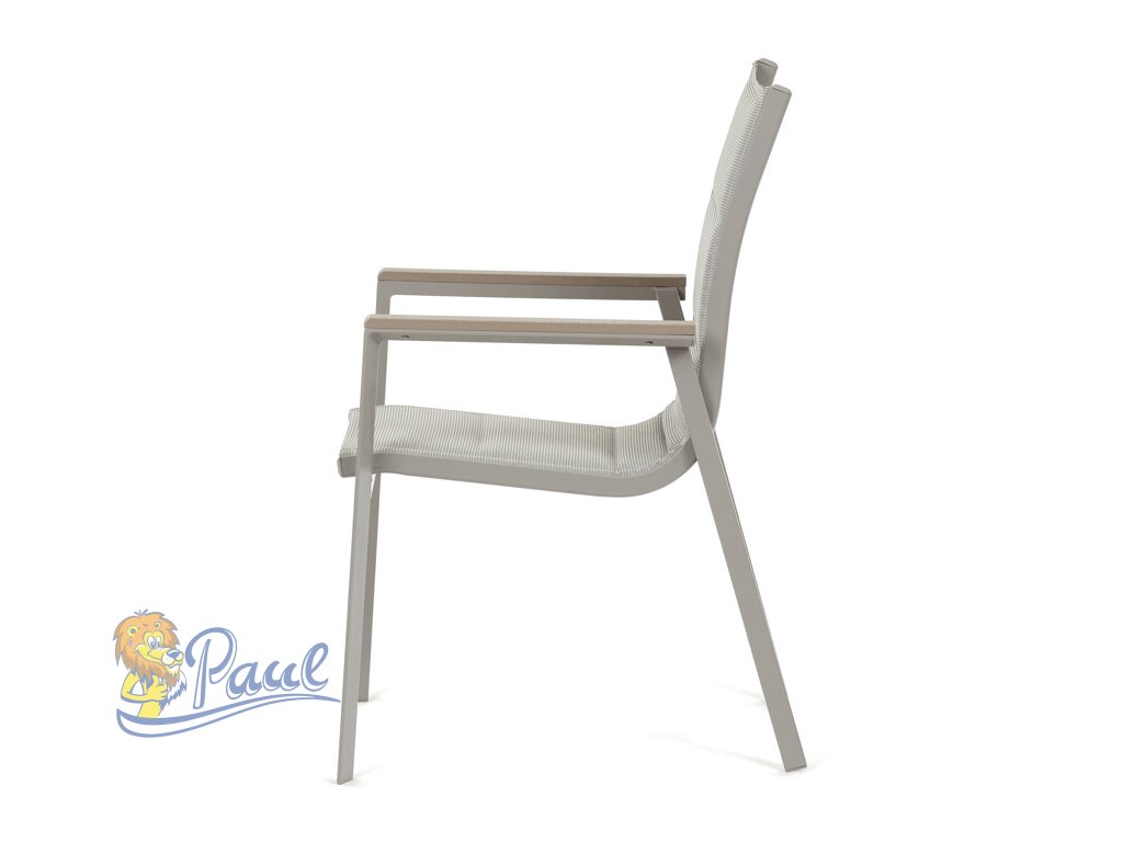 Židle zahradní béžový textilen, hliník, béžová barva, područky polywood v dekoru dubu