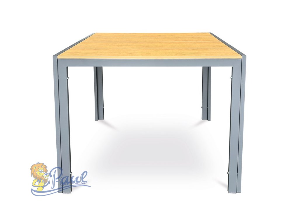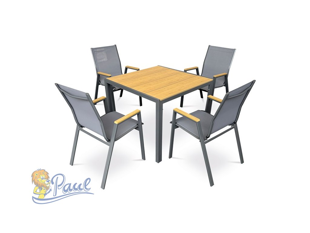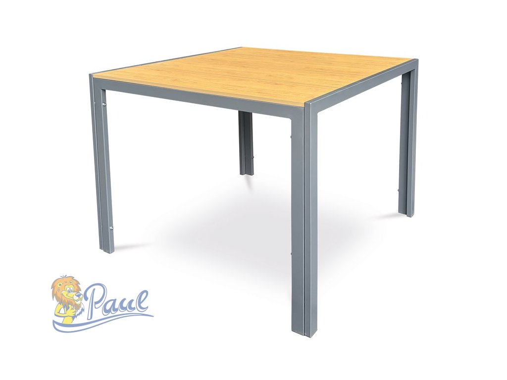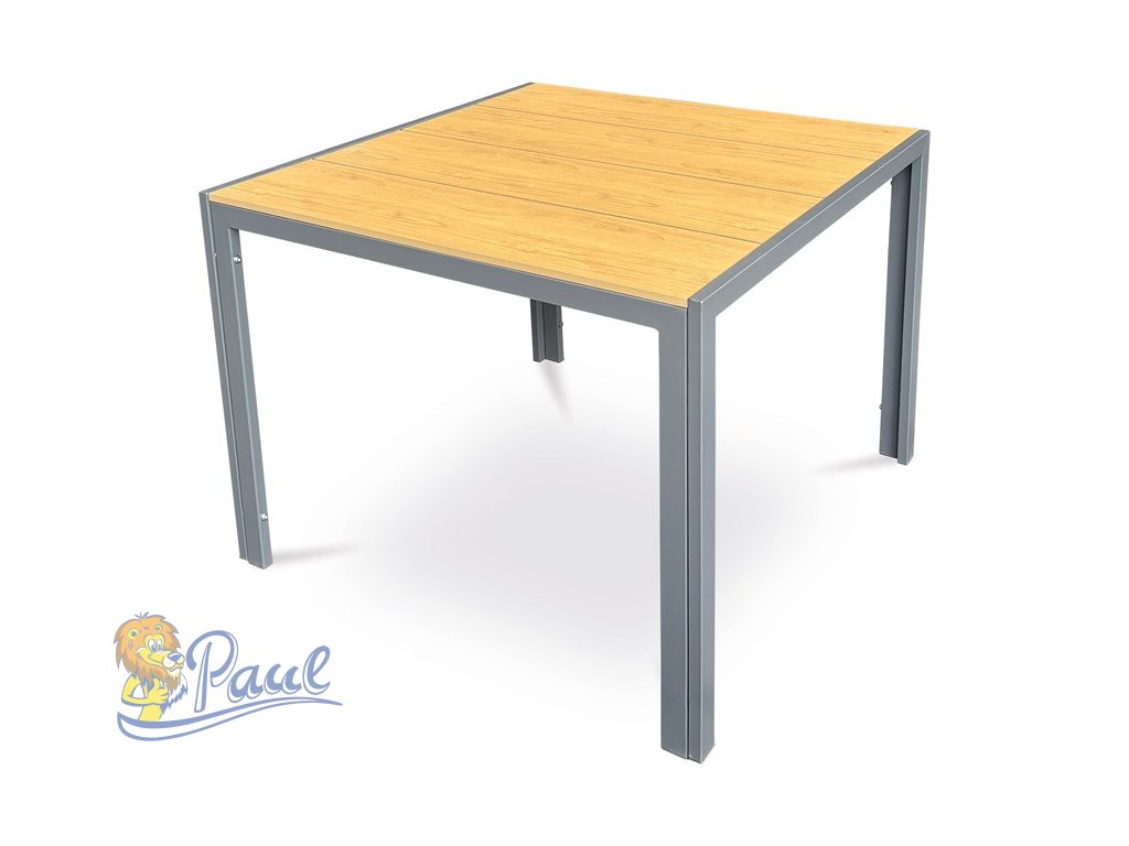 Stůl zahradní 90x90x73, deska polywood v dekoru dubu, šedá kovová konstrukce