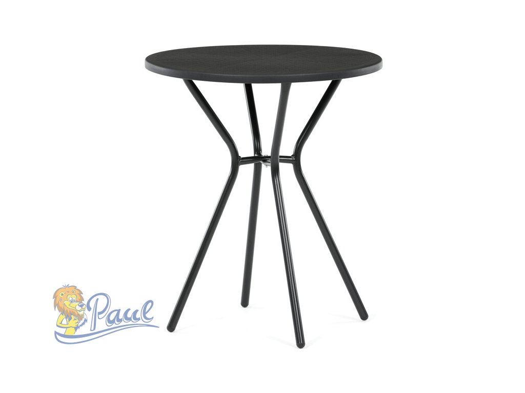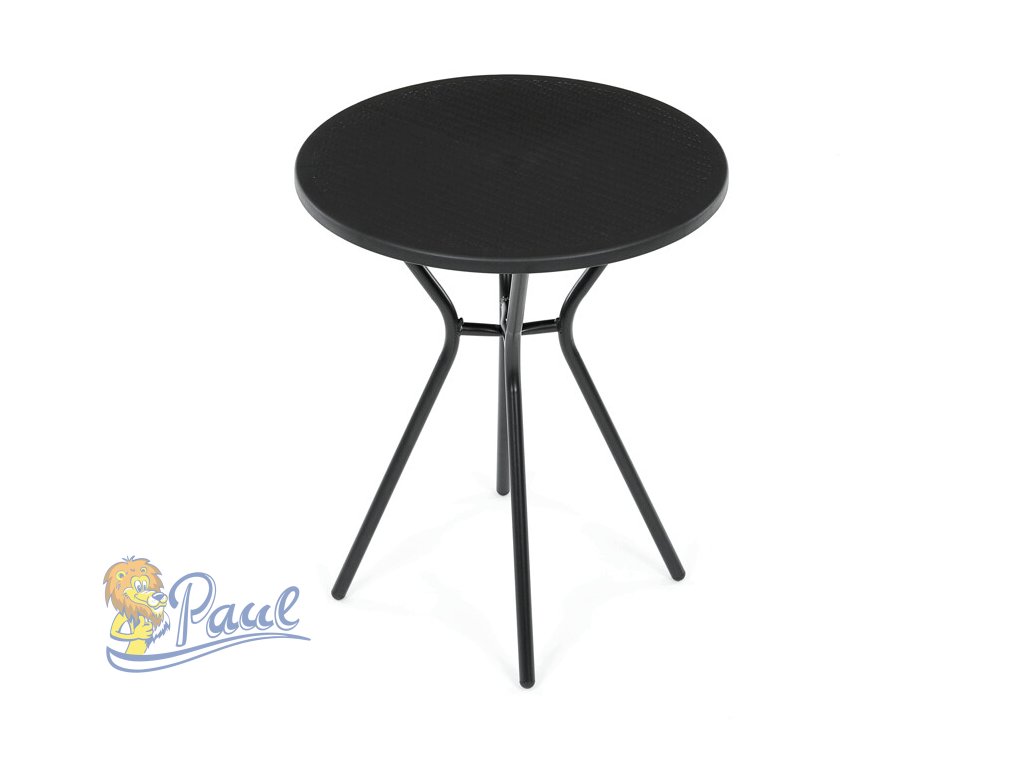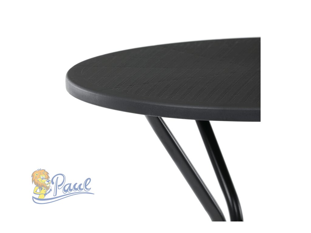 Zahradní stůl s černou plastovou deskou a stabilní kovovou podnoží nabízí praktické řešení pro venkovní posezení. Kulatý tvar desky s jemnou texturou zajišťuje snadnou údržbu a odolnost vůči povětrnostním vlivům. Kovová podnož je opatřena práškovým lakem, který chrání proti korozi a zvyšuje životnost stolu. Díky pevné konstrukci stůl poskytuje stabilní oporu pro různé aktivity na zahradě či terase. Kompaktní rozměry umožňují snadné umístění i v menších prostorách.Doplňkové parametry