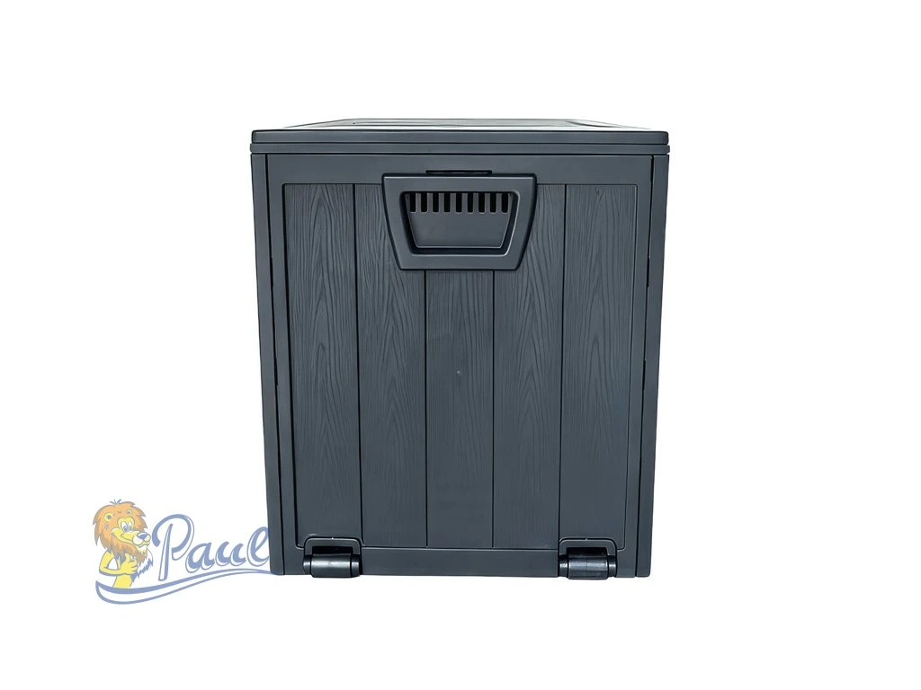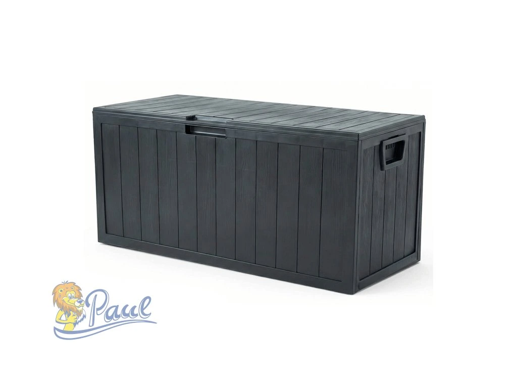 Zahradní úložný box v antracitové barvě je vyroben z pevného plastu, který je navržen pro dlouhou životnost a snadnou údržbu. Jeho prostorný objem 280 litrů poskytuje dostatek místa pro uskladnění zahradního nářadí, polštářů nebo dalších doplňků. Box je opatřen praktickým víkem s integrovanou rukojetí pro snadné otevírání a dvěma bočními úchyty pro pohodlnou manipulaci. Povrch s texturou dřeva dodává boxu přírodní vzhled, který se hodí do různých zahradních aranžmá. Díky odolnosti vůči povětrnostním vlivům je vhodný pro venkovní použití po celý rok.Doplňkové parametry