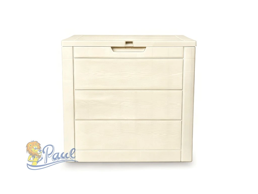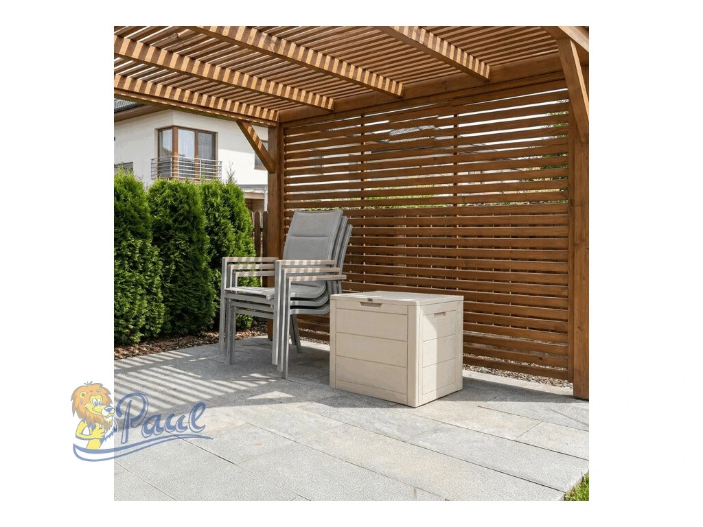 Zahradní uložný box v barvě cashmere je vyroben z pevného plastu, který je navržen pro dlouhou životnost a snadnou údržbu. Jeho prostorný objem 120 litrů nabízí dostatek místa pro uskladnění zahradních potřeb, polštářů nebo nářadí. Box má praktické úchyty po stranách pro snadné přenášení a víko s bezpečným uzávěrem, které chrání obsah před vlivy počasí. Povrch s jemnou texturou připomínající dřevo dodává boxu příjemný estetický vzhled vhodný do každé zahrady. Kompaktní rozměry umožňují umístění na terasu, balkon i do zahradního kouta.Doplňkové parametry