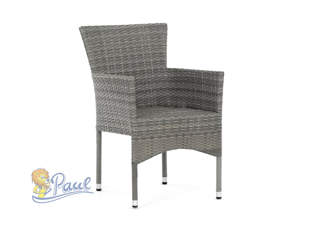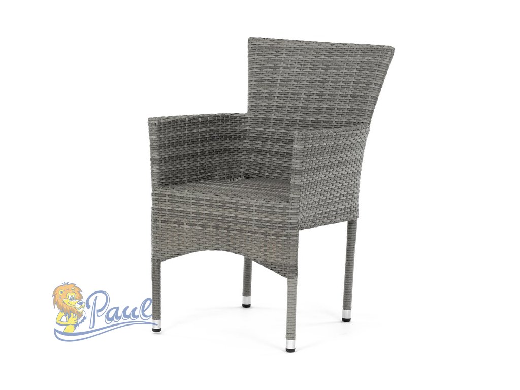 Židle zahradní, šedý umělý ratan, kov, stohovatelná.