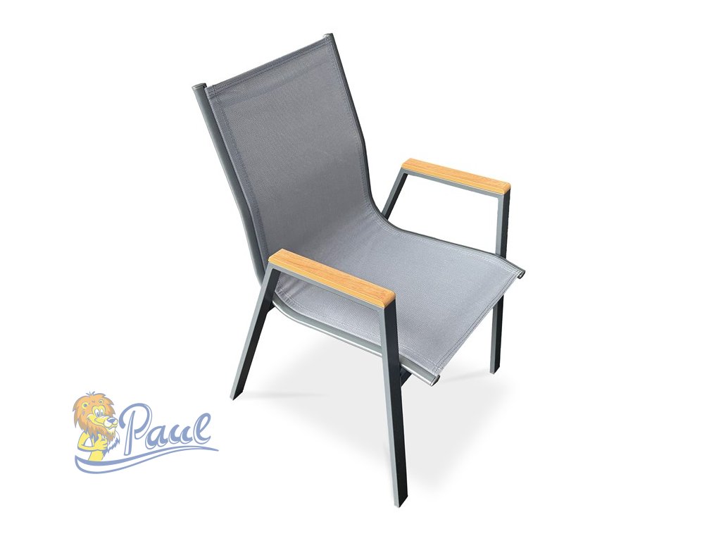 Židle zahradní šedý textilen, šedá kovová konstrukce, područky polywood v dekoru dubu