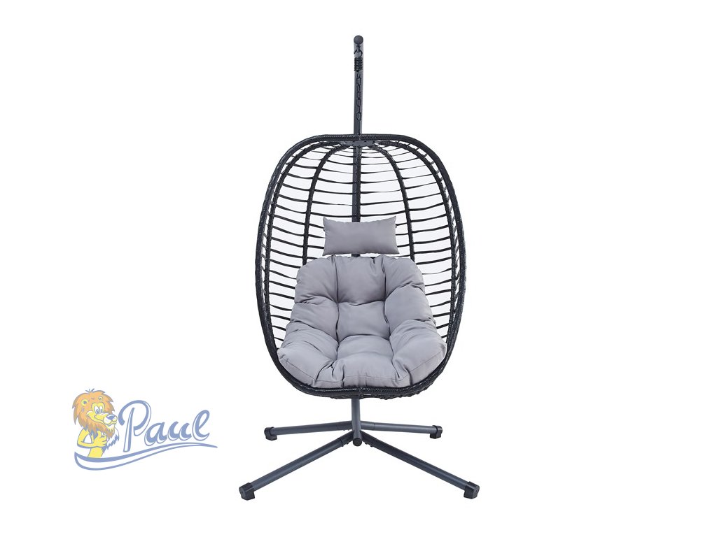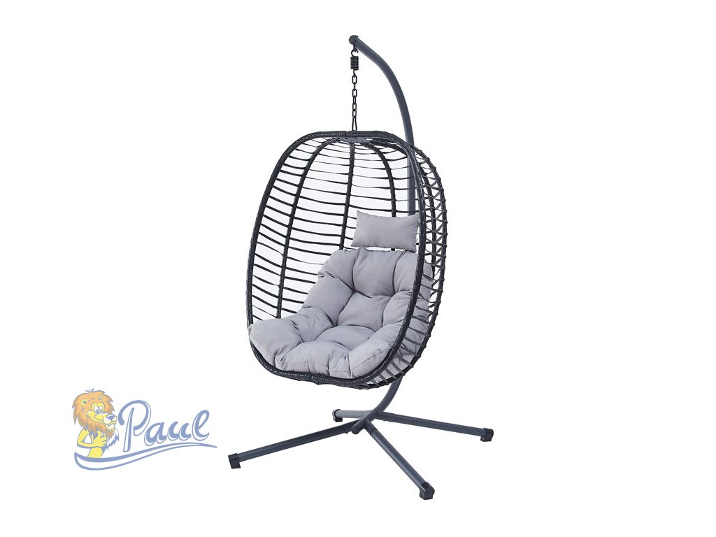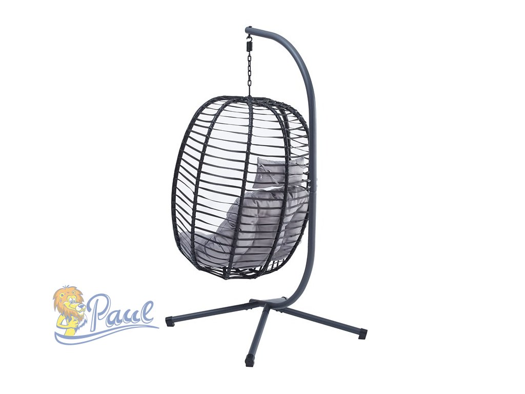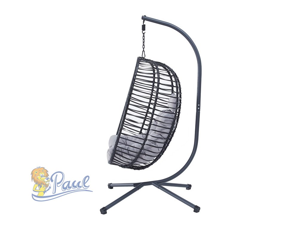 Zahradní závěsné křeslo, výplet antracit umělý ratan, potah šedá látka